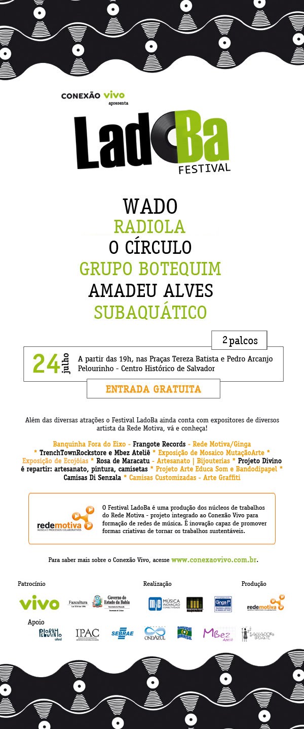 Cufa Bahia (Central Única das Favelas), o selo Positivoz e o Pelourinho Cultural promovem a Semana Baiana de Hip-Hop, celebrando o dia mundial do Hip-Hop 12/11 em Salvador na Praça Tereza Batista – Pelourinho e compactuando com toda manifestaçao de reflexão ao 20 de novembro.